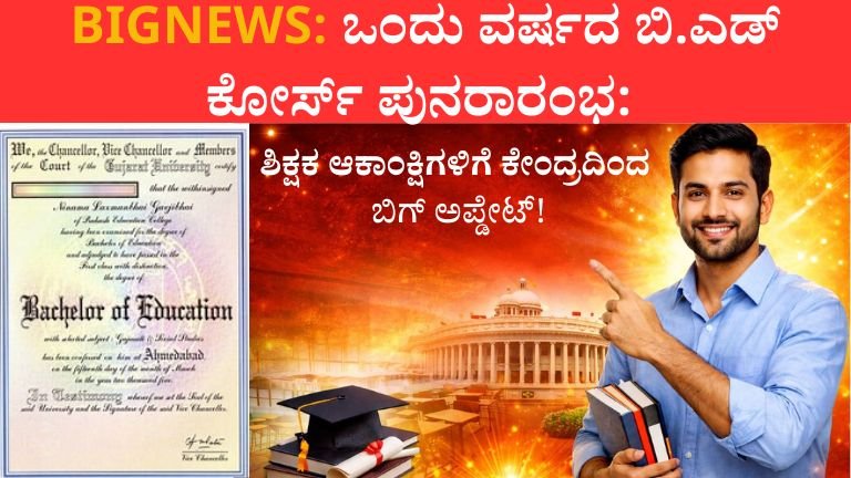 1 ವರ್ಷದ B.Ed ಕೋರ್ಸ್ ಮತ್ತೆ ಆರಂಭ – ಶಿಕ್ಷಕ ಆಕಾಂಕ್ಷಿಗಳಿಗೆ ಸಿಹಿ ಸುದ್ದಿ ಭಾರತೀಯ ಶಿಕ್ಷಣ ಕ್ಷೇತ್ರದಲ್ಲಿ ಮಹತ್ವದ ಬದಲಾವಣೆಯೊಂದನ್ನು ಕೇಂದ್ರ ಸರ್ಕಾರ ಘೋಷಿಸಿದೆ. ಶಿಕ್ಷಕರ …