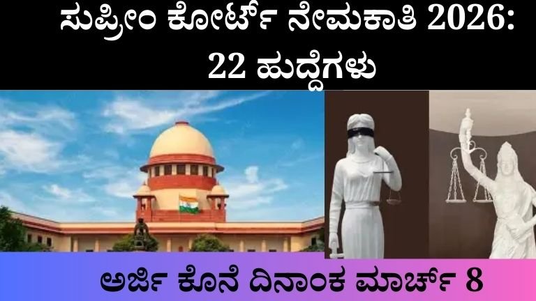 ಸುಪ್ರೀಂ ಕೋರ್ಟ್ ನೇಮಕಾತಿ 2026: 22 ಹುದ್ದೆಗಳು , ವೇತನ ₹78,800 ವರೆಗೆ , ಅರ್ಜಿ ದಿನಾಂಕ, ಅರ್ಹತೆ, ಸಂಪೂರ್ಣ ಮಾಹಿತಿ ಭಾರತದ ಅತ್ಯುನ್ನತ ನ್ಯಾಯಾಂಗ ಸಂಸ್ಥೆಯಾದ …